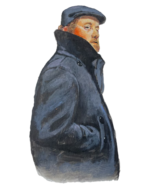 The cadet shrugged, “Curly, blond hair, trimmed beard, and mustache. Black peacoat. Black newsie cap-”